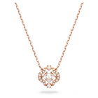 اجعلي الحظ حليفك الدائم مع هذا العقد الأنيق. تزدان هذه القطعة بحجر شفاف براق على شكل زهرة البرسيم المصممة بشكل حر عائم داخل إطارها، مع سلسلة مطلية باللون الذهبي الوردي. اختاري هذه القطعة للارتقاء بإطلالتك وحظك.